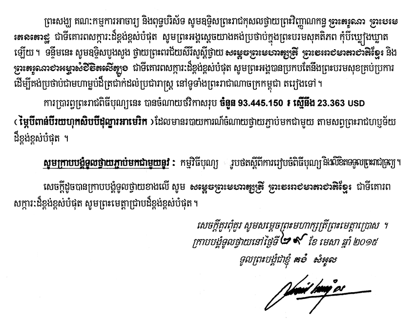 Action de Norodom Sihanouk » 2015 » Avril » Action de SM la Reine-Mère Norodom Monineath