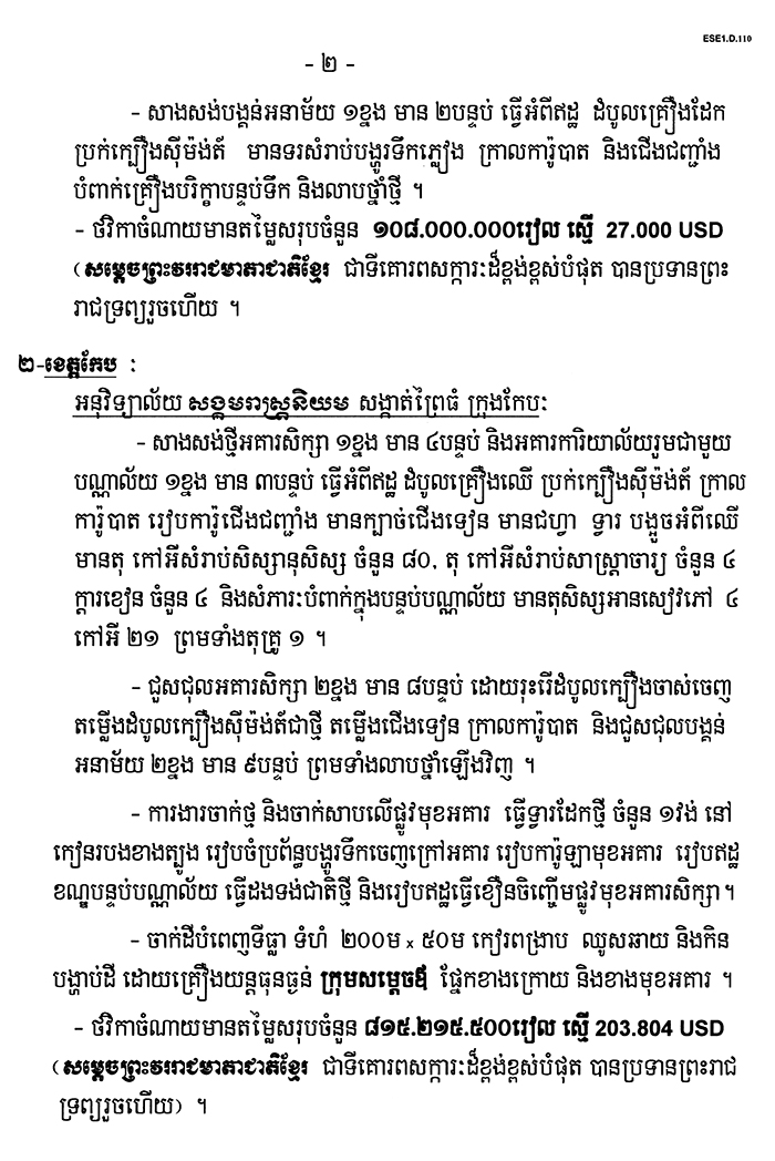 Action de Norodom Sihanouk » 2015 » Juillet » Action de Feu SM le Roi-Père,