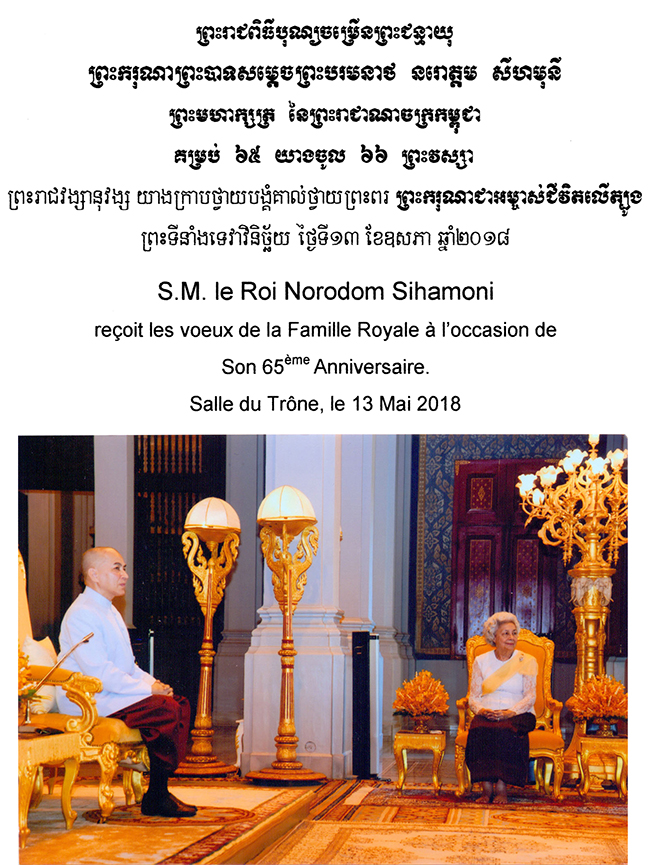 Activités Royales » 2018 » Mai » SM Norodom Sihamoni, Roi du Cambodge, reçoit les voeux de la Famille Royale