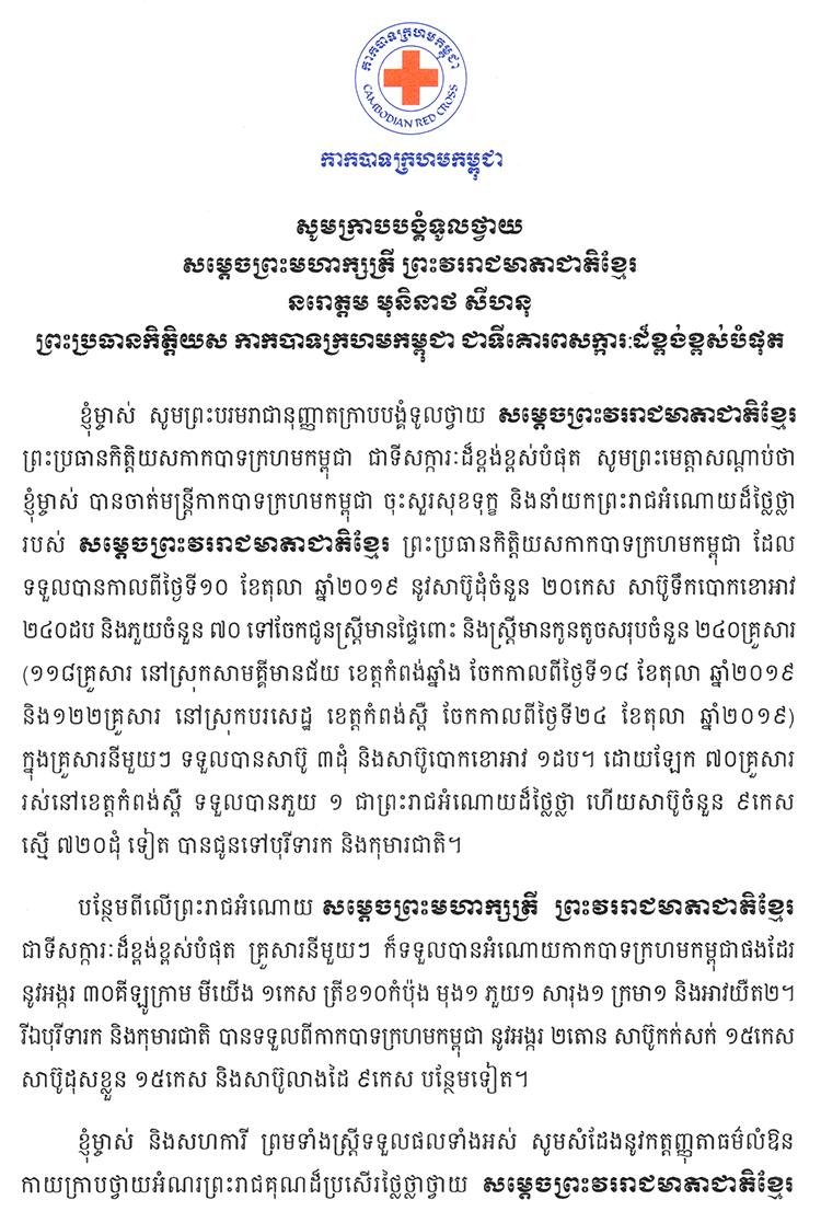 Activités Royales » 2019 » Novembre » Rapport de Samdech Bunrany Hun Sen