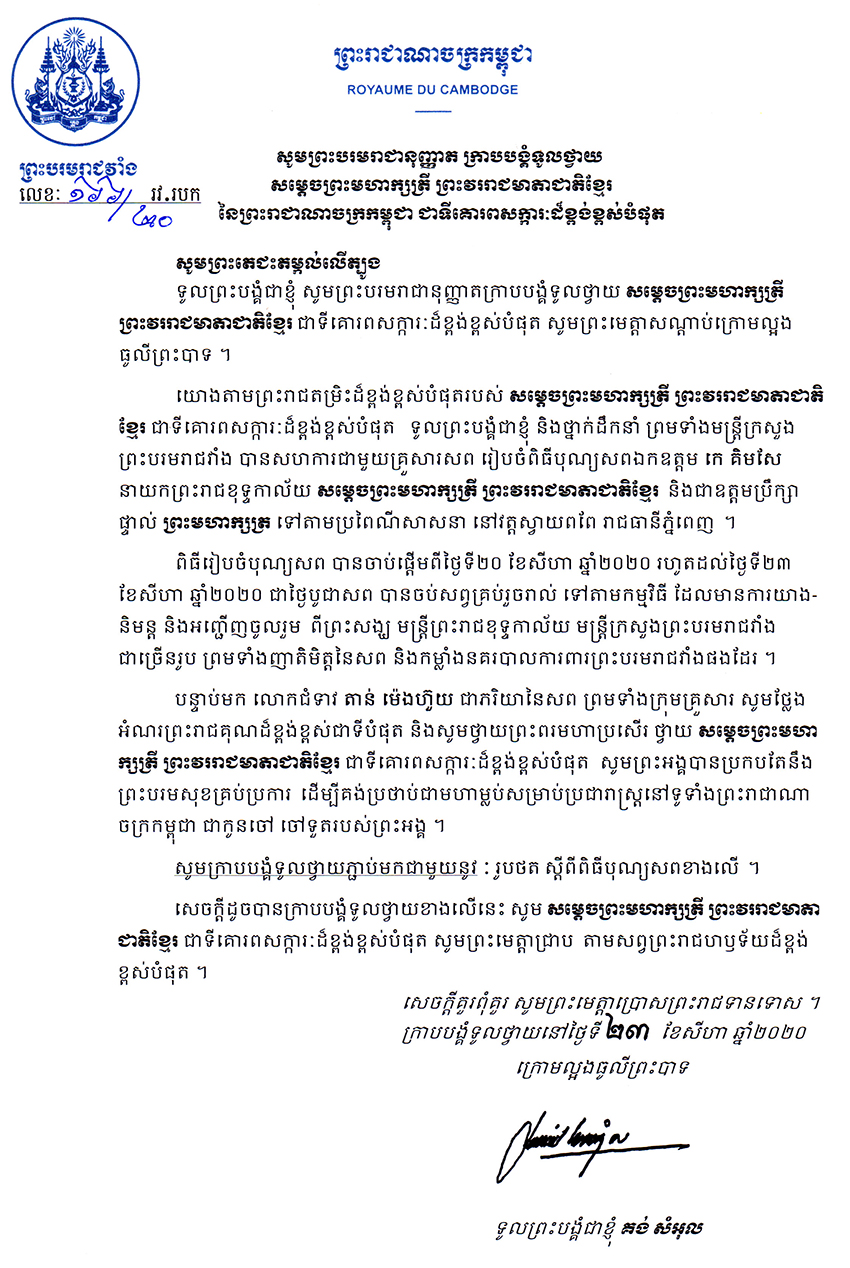 Action de Norodom Sihanouk » 2020 » Août » Action de SM la Reine-Mère Norodom Monineath Sihanouk