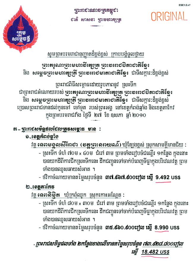 Action de Norodom Sihanouk » 2010 » Aout » Action de Norodom Sihanouk du Cambodge aux plans