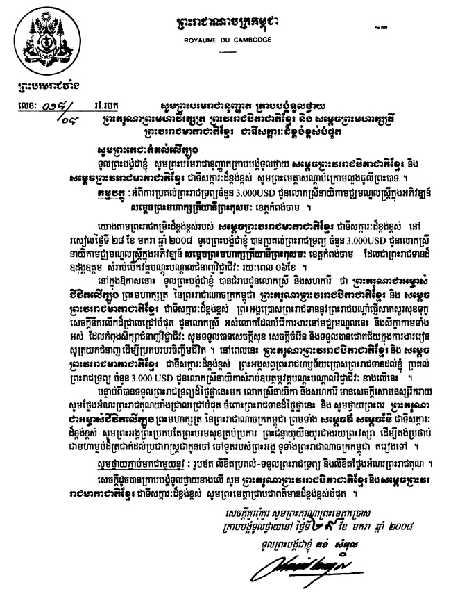 Action de Norodom Sihanouk » 2008 » Janvier » Action de Norodom Sihanouk du Cambodge aux plans