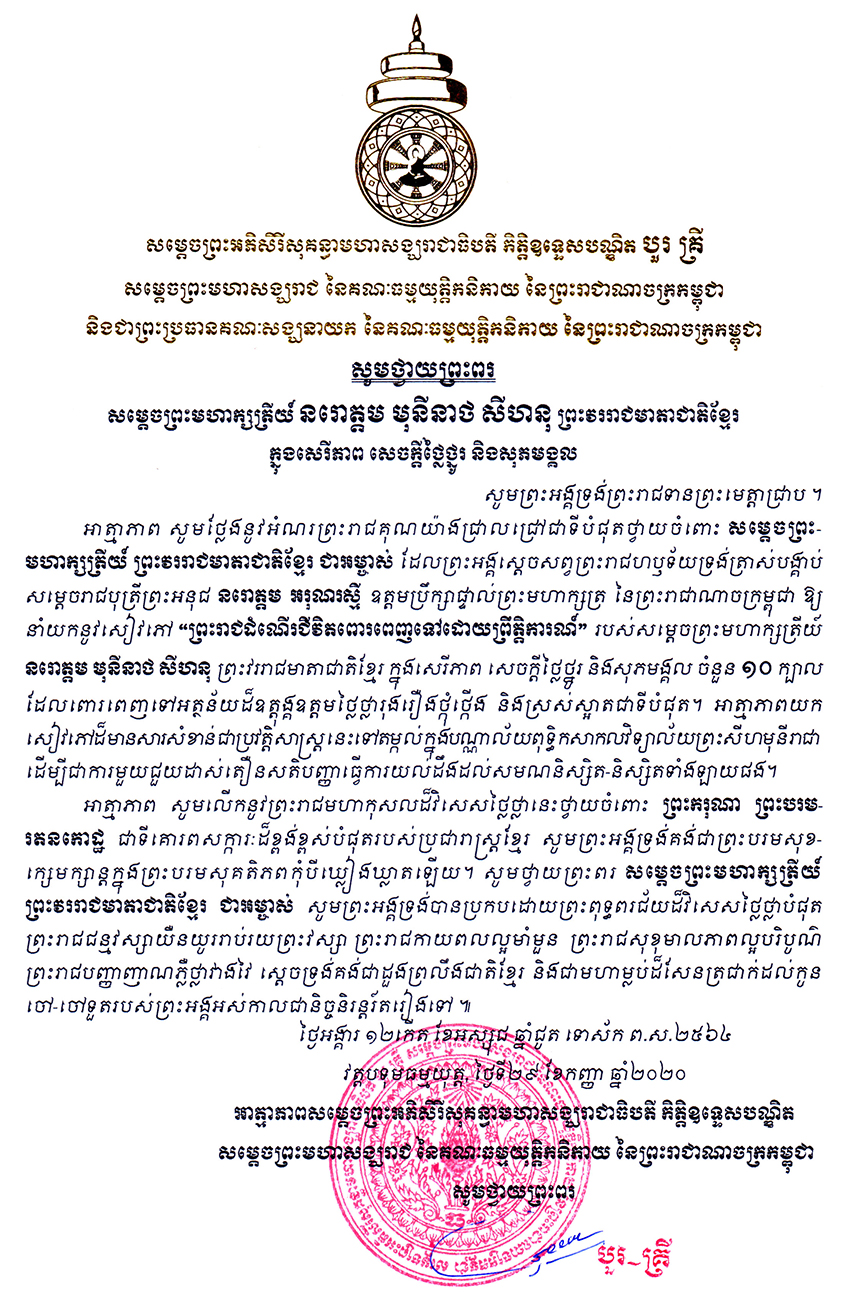Correspondance Chefs d’Etat » 2020 » Septembre » Lettre de SS Samdech Bour Kry