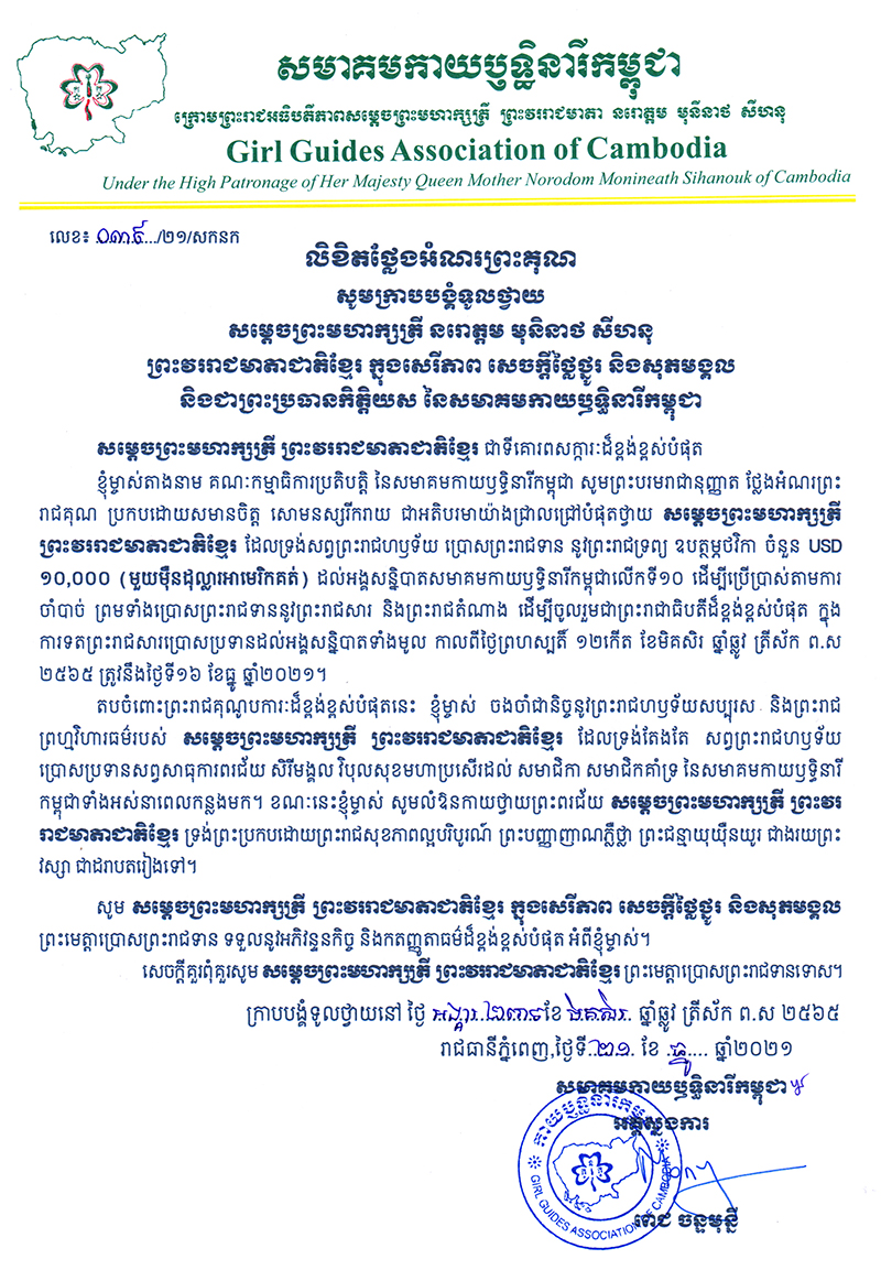 Correspondance Privée » 2021 » Décembre » Lettre de remerciements de Mme Pich Chanmony