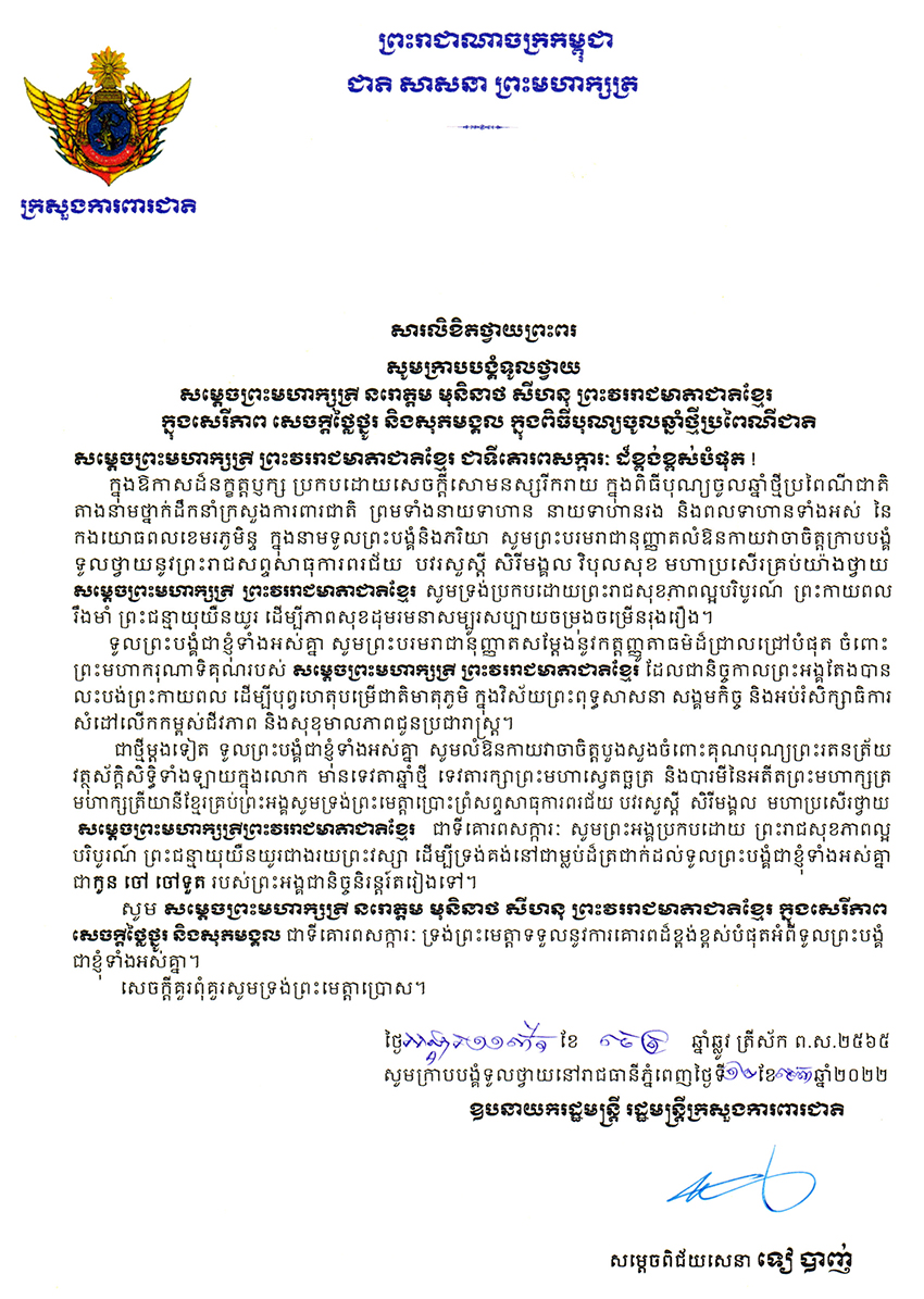 Correspondance d'Etat » 2022 » Avril » Vœux de Samdech Tea Banh