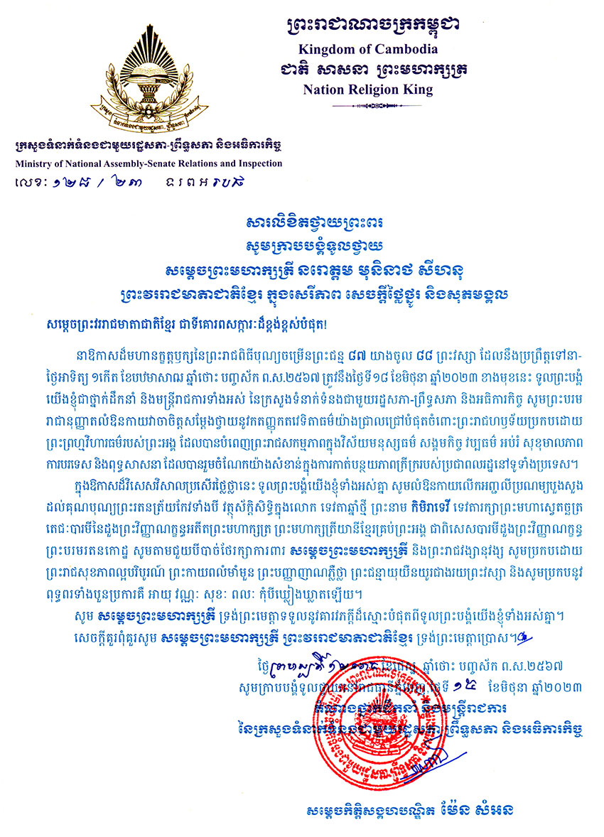 Correspondance d'Etat » 2023 » Juin » Voeux de Samdech Men Sam An