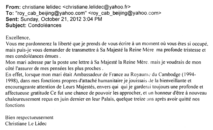Correspondance Privée » 2012 » Octobre » Lettre de condoléances de Mme Christiane Le Lidec